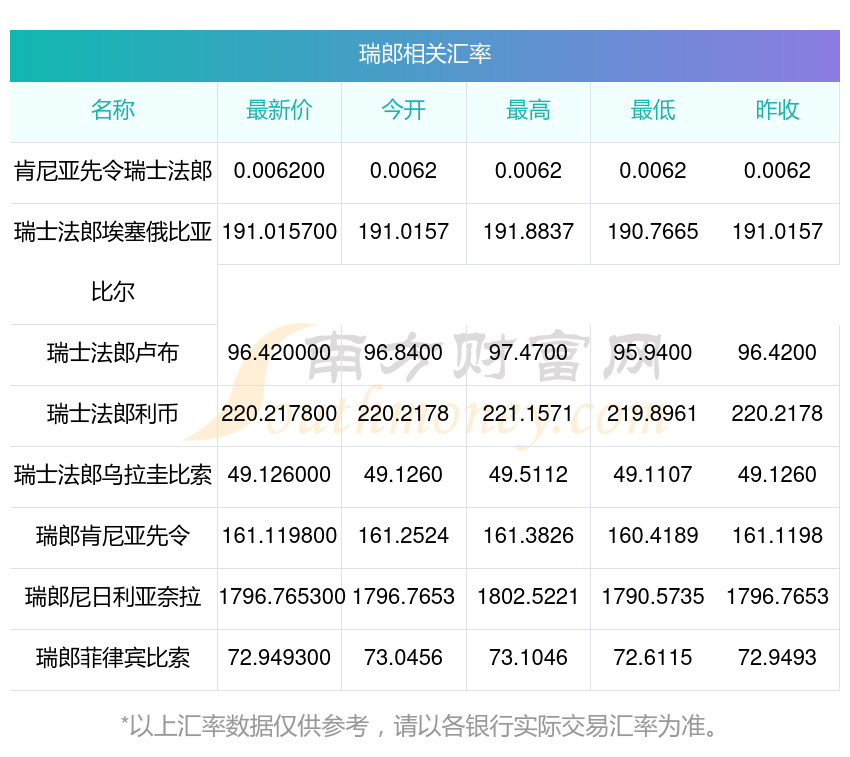 南方財富網(wǎng)為您提供瑞郎對埃及鎊匯率最新價格詳情。