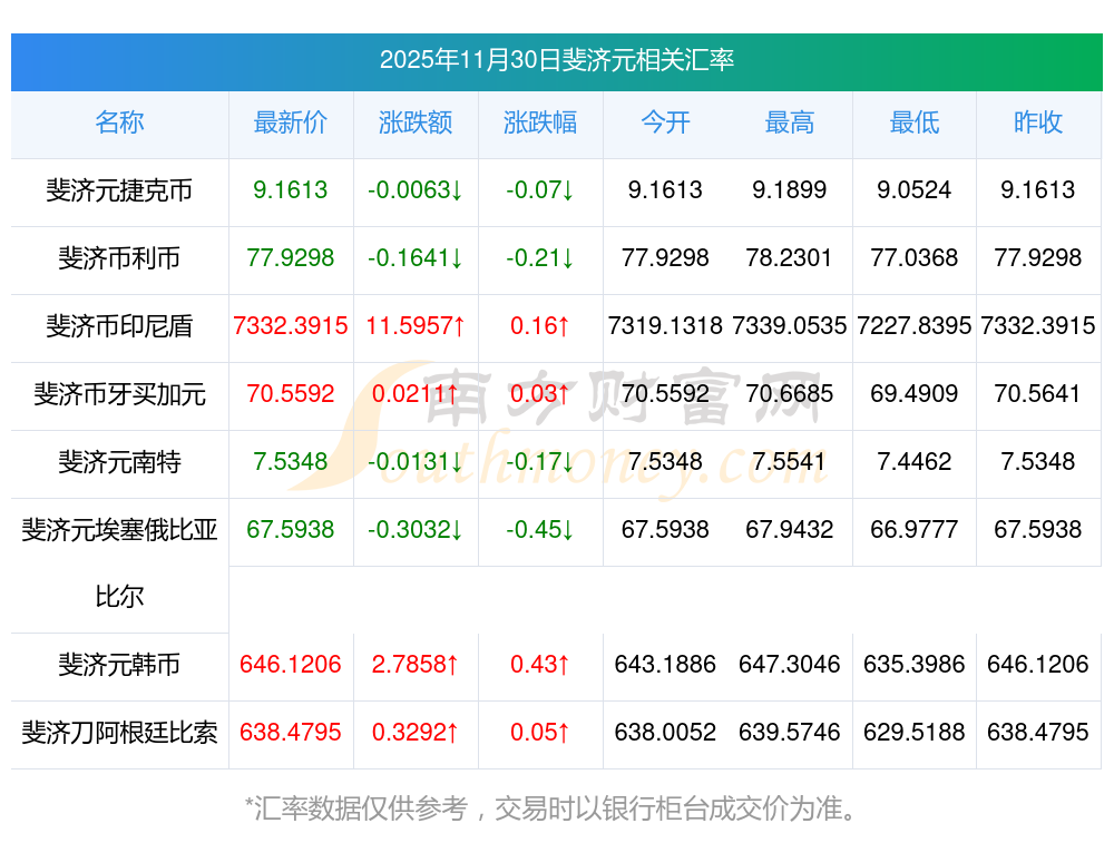 實時匯率_今日斐濟元換韓幣是多少?2025/11/30