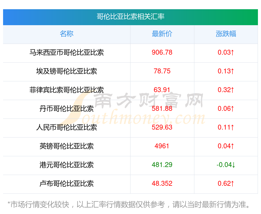 2025年11月30日哥倫比亞比索相關(guān)匯率查詢