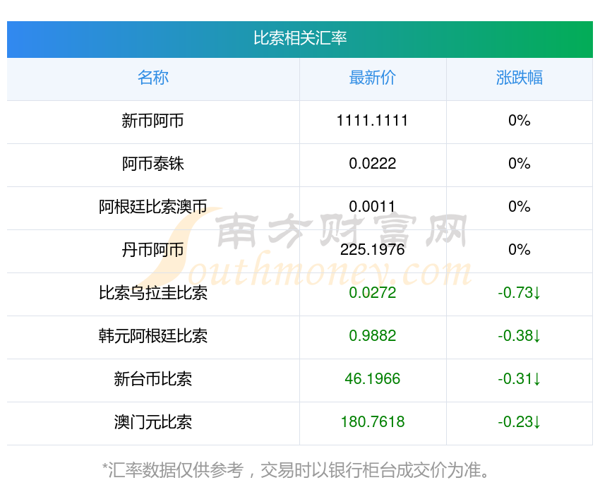市場行情變化較快,以上匯率行情數(shù)據(jù)僅供參考,請(qǐng)以當(dāng)時(shí)最新行情為準(zhǔn)。