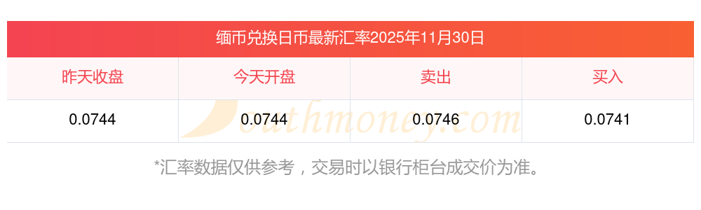 1緬元對(duì)日元多少?今日日元匯率一覽11月30日