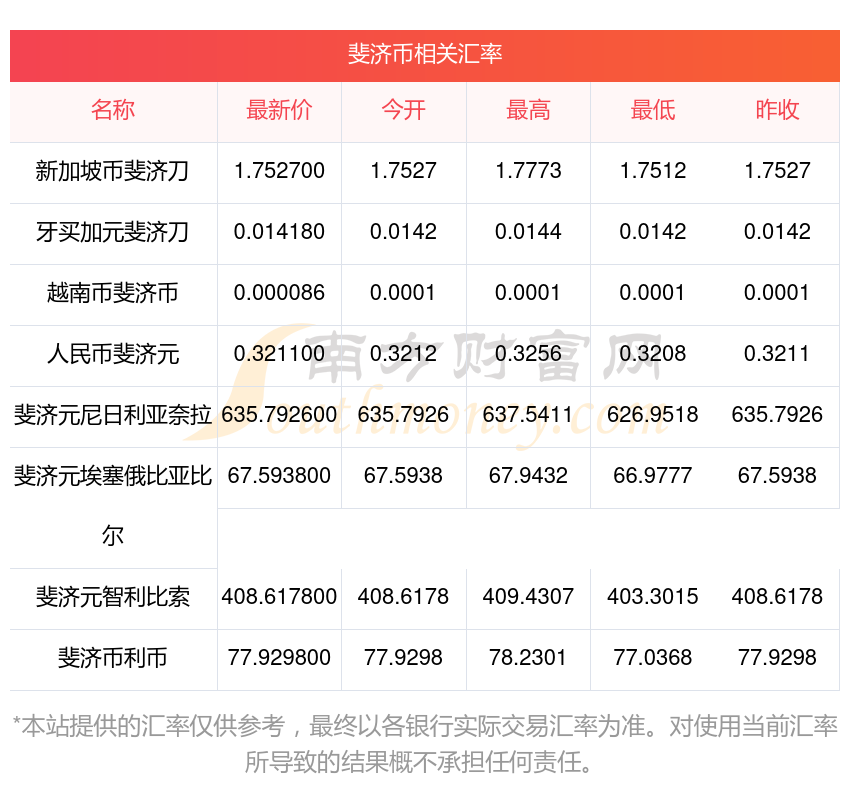 2025年11月30日斐濟(jì)幣相關(guān)匯率查詢