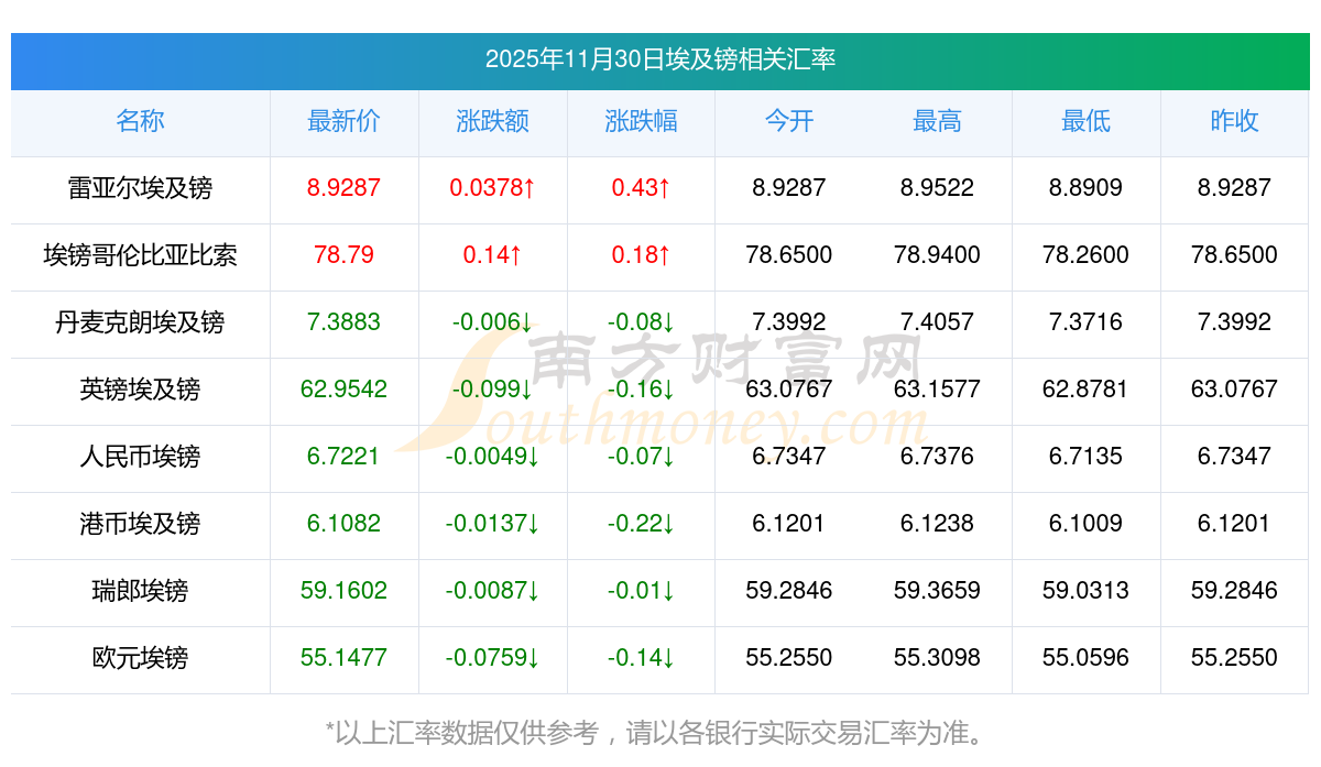 2025年11月30日埃及鎊相關(guān)匯率查詢