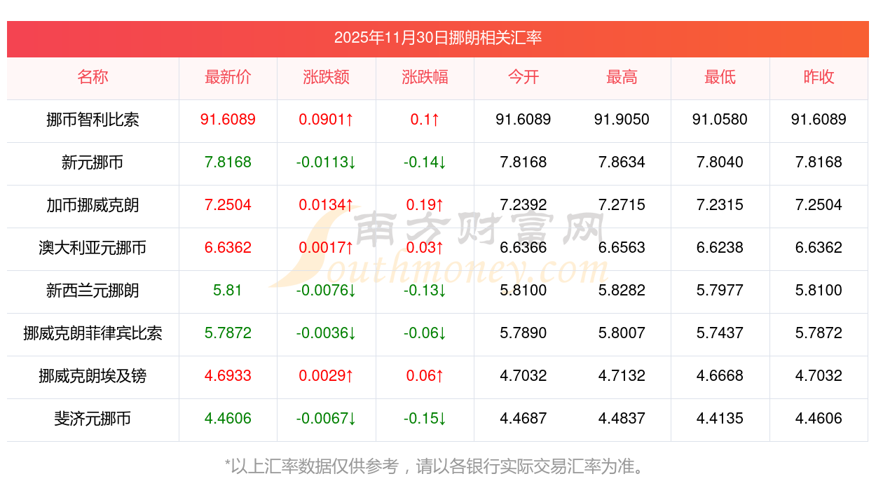 2025年11月30日挪朗兌換哥倫比亞比索最新匯率:369.860000,今開(kāi):368.7800,昨收:369.8600,最高:371.6100,最低:366.8600。
