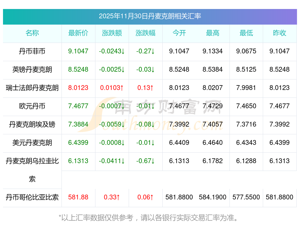 2025年11月30日丹麥克朗相關(guān)匯率查詢