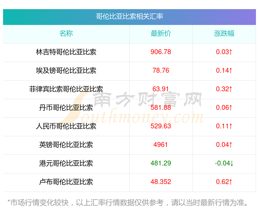 南方財(cái)富網(wǎng)為您提供哥倫比亞比索對挪幣匯率最新價(jià)格詳情。