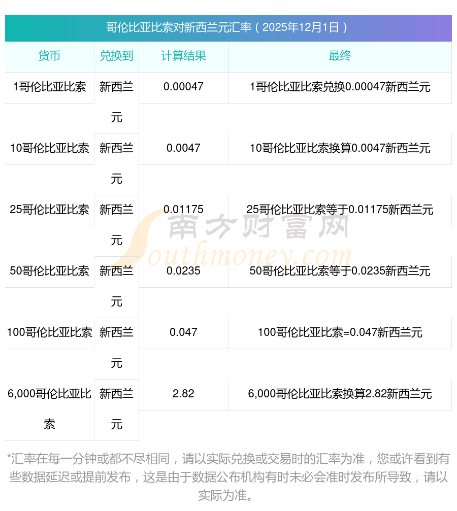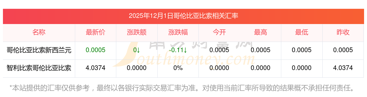 哥倫比亞比索匯率調(diào)整嗎?2哥倫比亞比索與新西蘭元匯率是多少12月1日