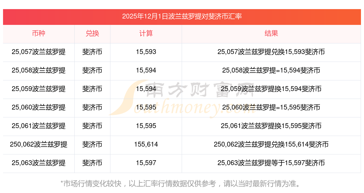 28波蘭茲羅提兌換斐濟幣匯率(2025年12月1日)