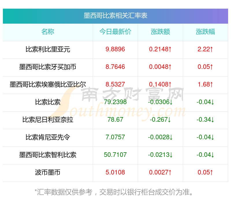 2025年12月1日墨西哥比索相關(guān)匯率查詢