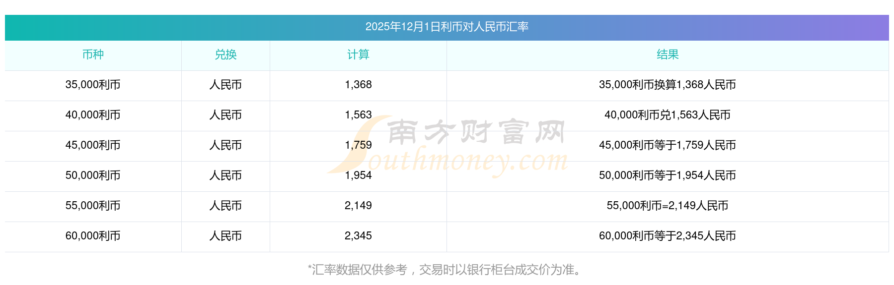 不同貨幣兌換人民幣查詢(xún) 今天利幣兌換人民幣多少元?(12月1日)