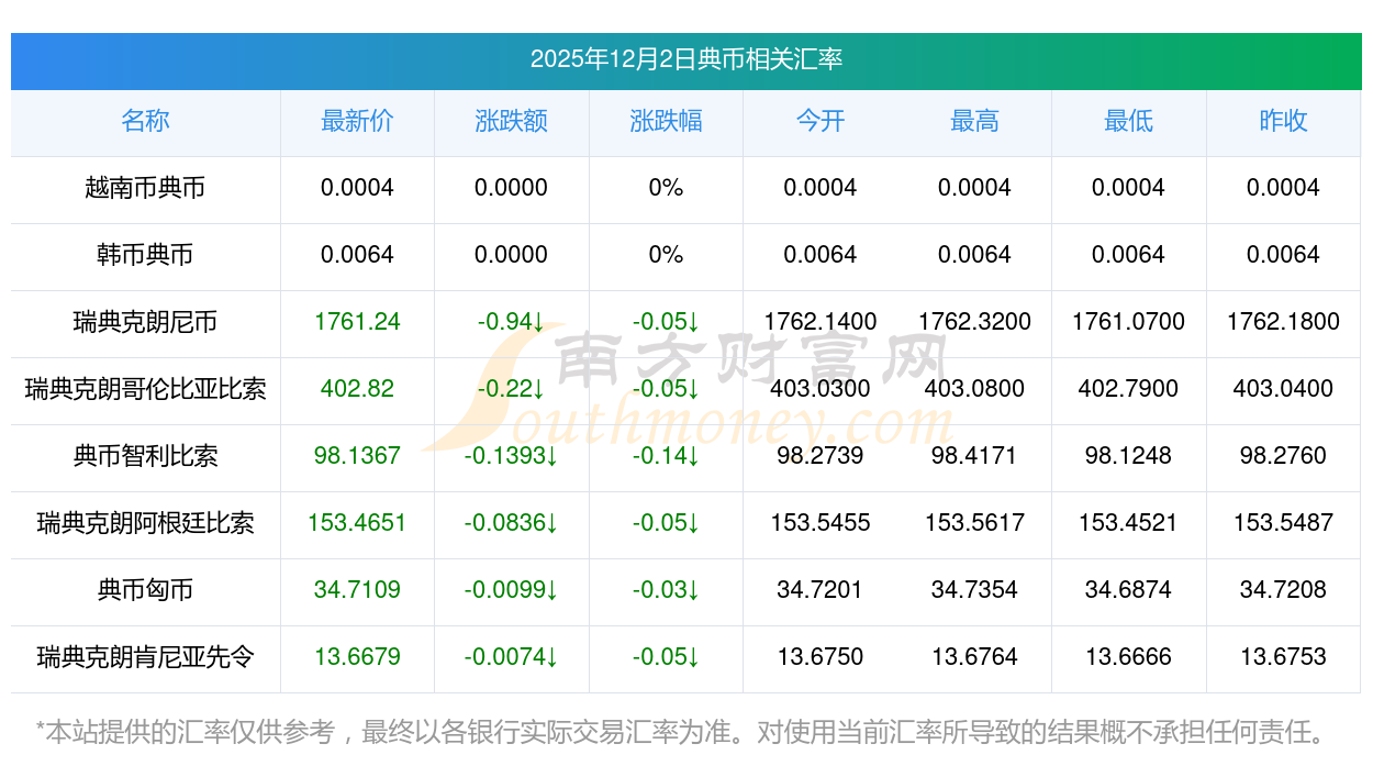 2025年12月2日典幣兌換克朗最新匯率:2.201900,今開(kāi):2.2019,昨收:2.2020,最高:2.2025,最低:2.2009。