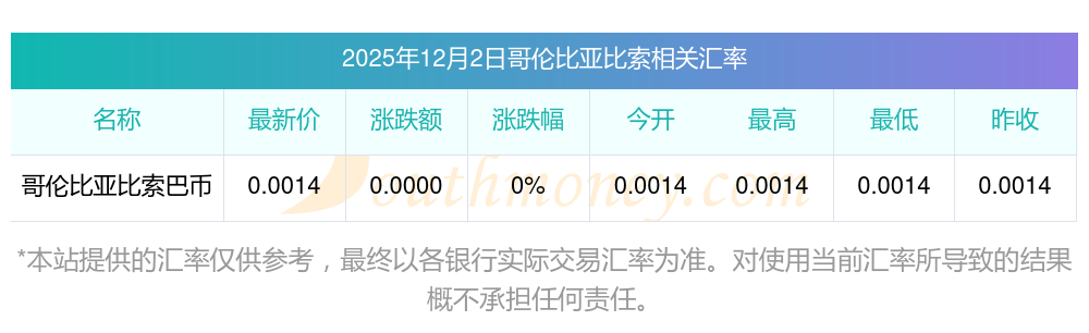 今天哥倫比亞比索兌巴幣匯率價格走勢 12-2