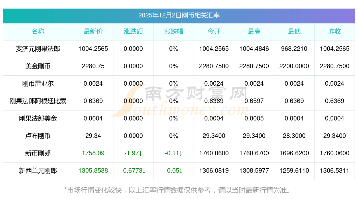 根據(jù)2025年12月2日匯率計(jì)算,剛幣兌換雷亞爾匯率最新價(jià)0.002351,今開(kāi)價(jià)0.0024,昨收價(jià)0.0024,最高價(jià)0.0024,最低價(jià)0.0024。