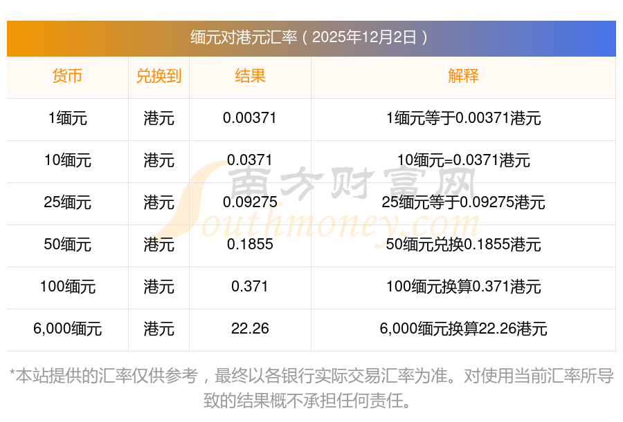 匯率今天行情_緬元對港元實(shí)時(shí)匯率查詢2025/12/02