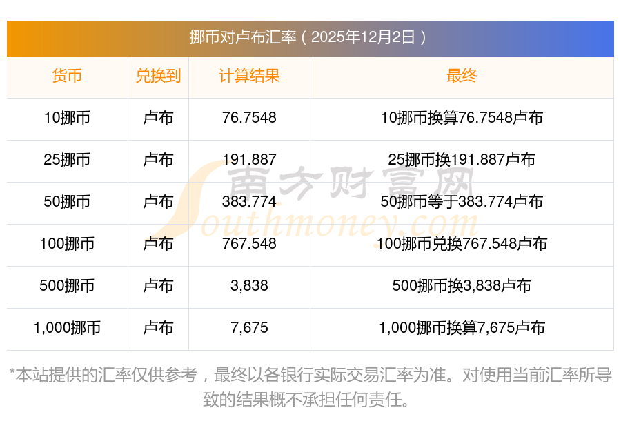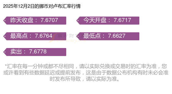 今日挪幣匯價:2025年12月2日10挪幣兌盧布匯價一覽表