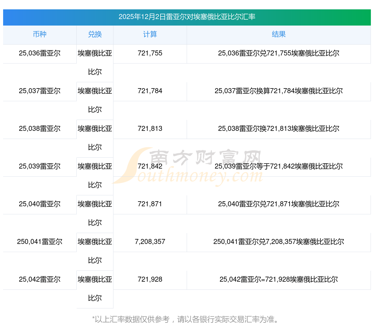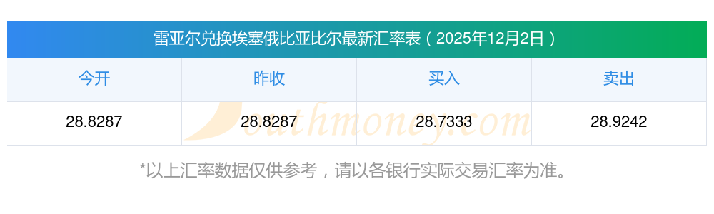 雷亞爾今日外匯_3雷亞爾兌換埃塞俄比亞比爾匯率是多少?(2025年12月2日)
