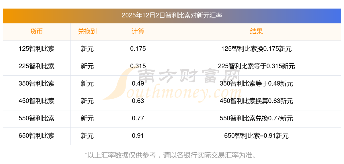 南方財富網(wǎng)為您提供智利比索對新元匯率最新價格詳情。