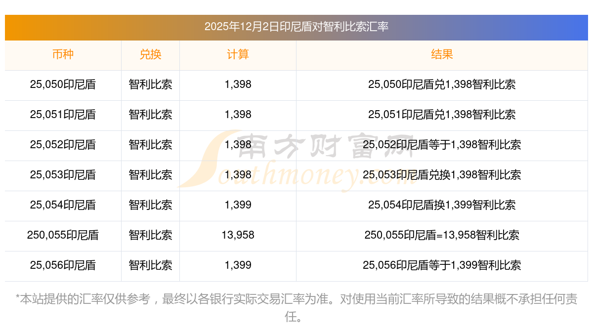 新匯率調整_印尼盾對智利比索報價是多少?12月2日