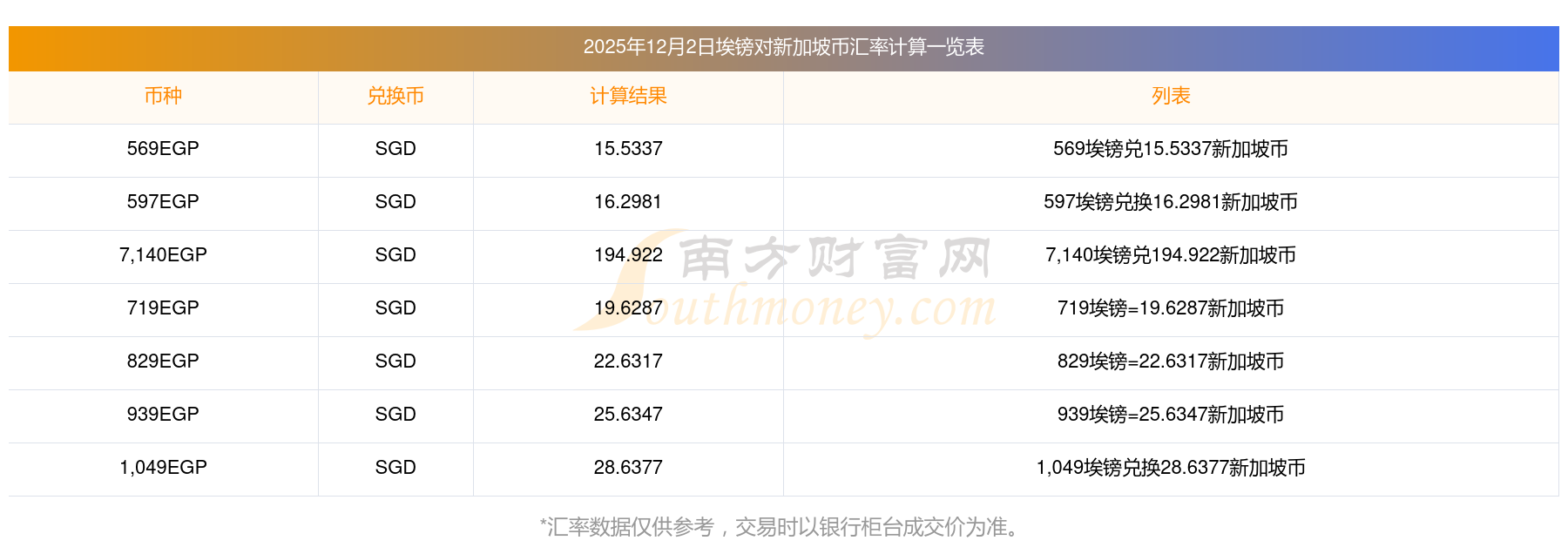 新匯率,今日埃鎊對新加坡幣匯率多少?2025-12-02