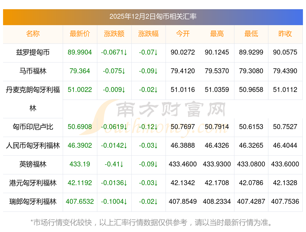 南方財富網(wǎng)為您提供匈幣對美元匯率最新價格詳情。
