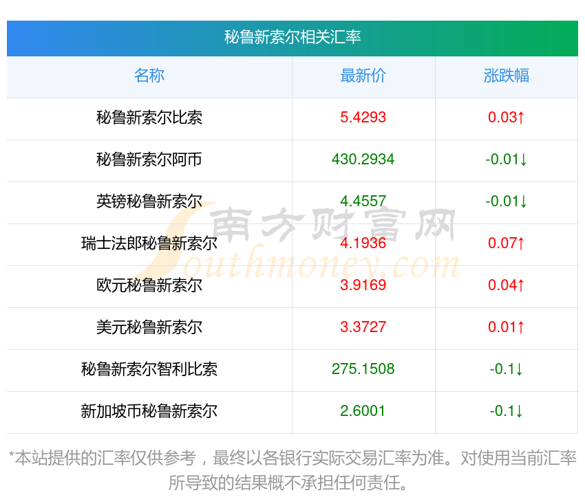 南方財(cái)富網(wǎng)為您提供秘魯新索爾對阿幣匯率最新價(jià)格詳情。