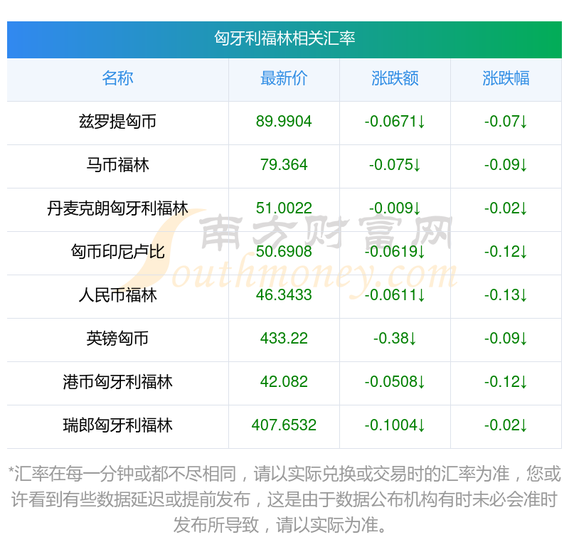 2025年12月2日匈牙利福林相關(guān)匯率查詢