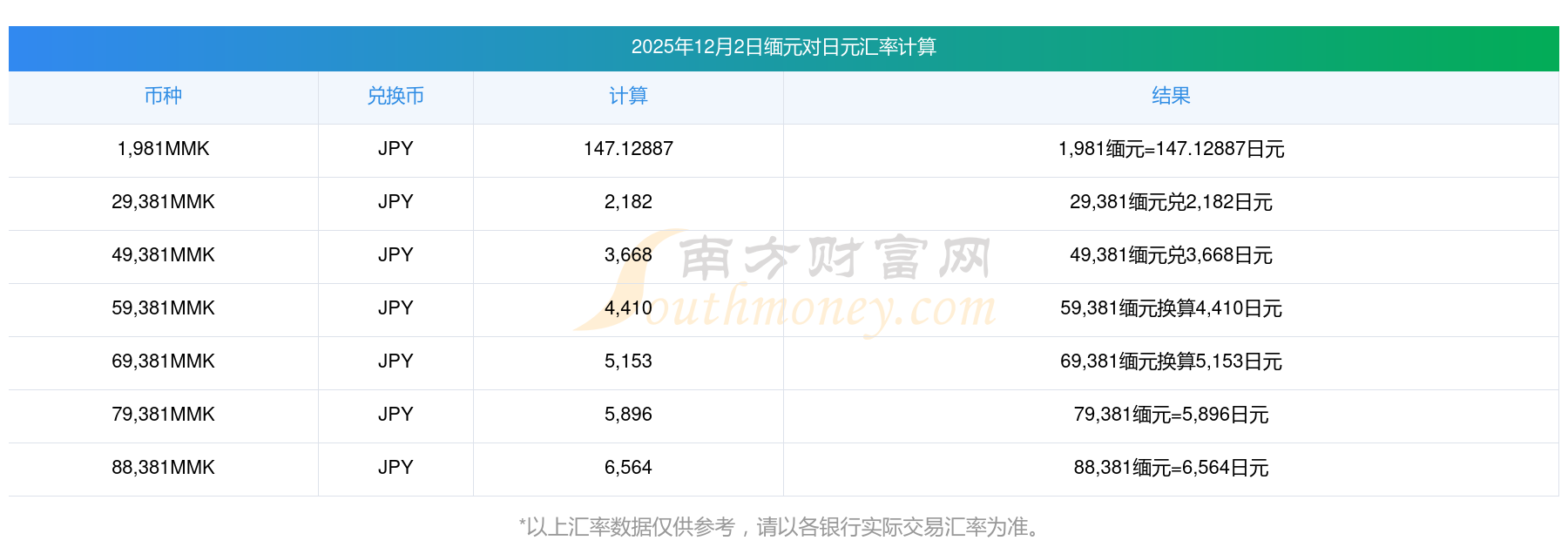 今天匯率更新!2025年12月2日66緬元兌換日元是多少?