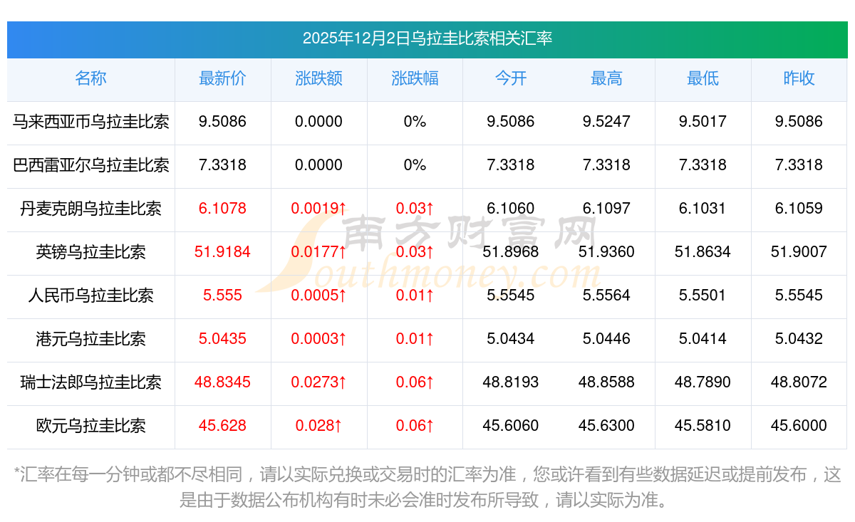2025年12月2日烏拉圭比索相關(guān)匯率查詢