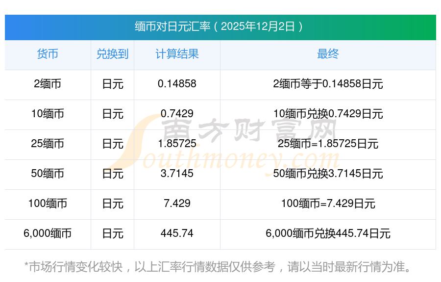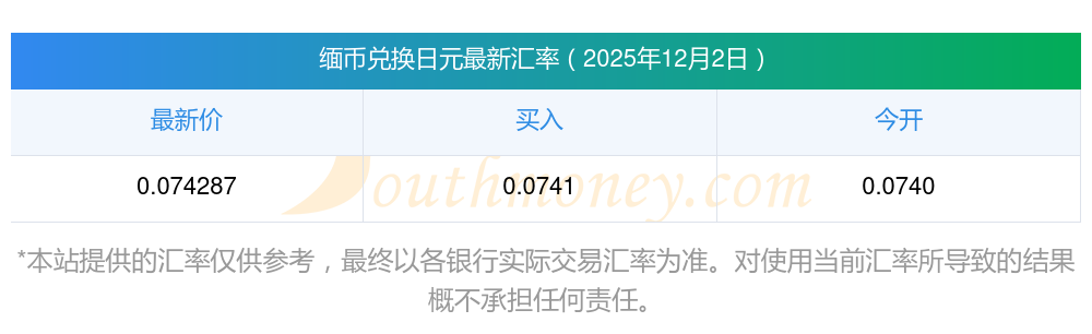 今日1緬元對日元多少?日元匯率一覽2025/12/2