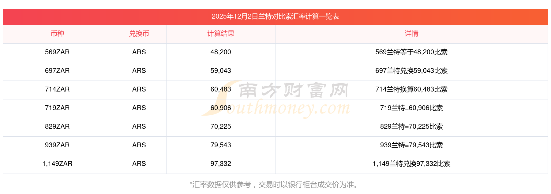今日蘭特匯價(jià):2025年12月2日20蘭特兌比索匯價(jià)一覽表
