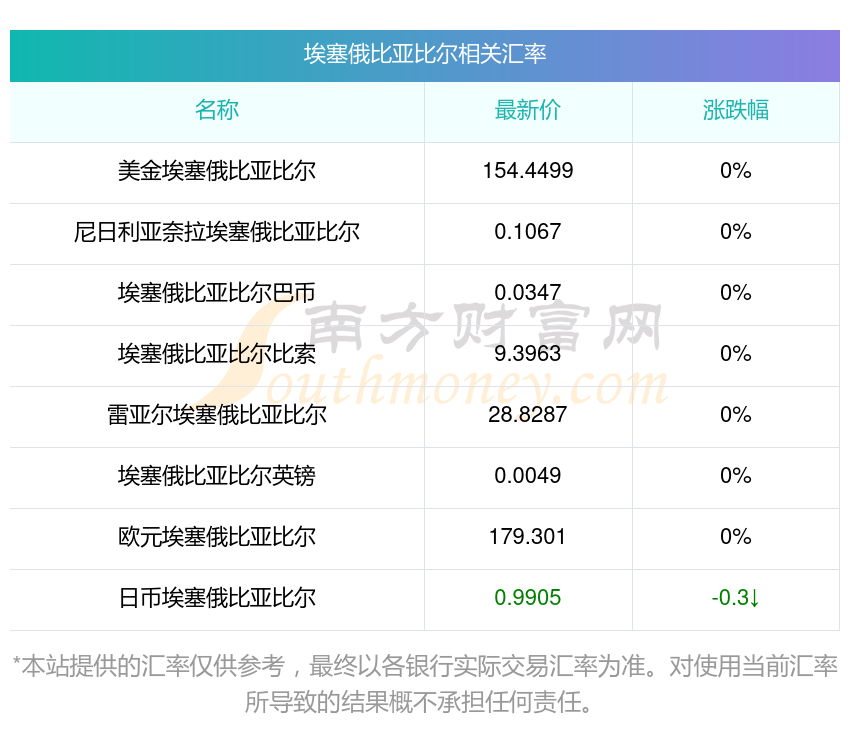 南方財富網(wǎng)為您提供埃塞俄比亞比爾對尼幣匯率最新價格詳情。