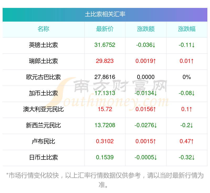 南方財(cái)富網(wǎng)為您提供土比索對斐濟(jì)元匯率最新價(jià)格詳情。