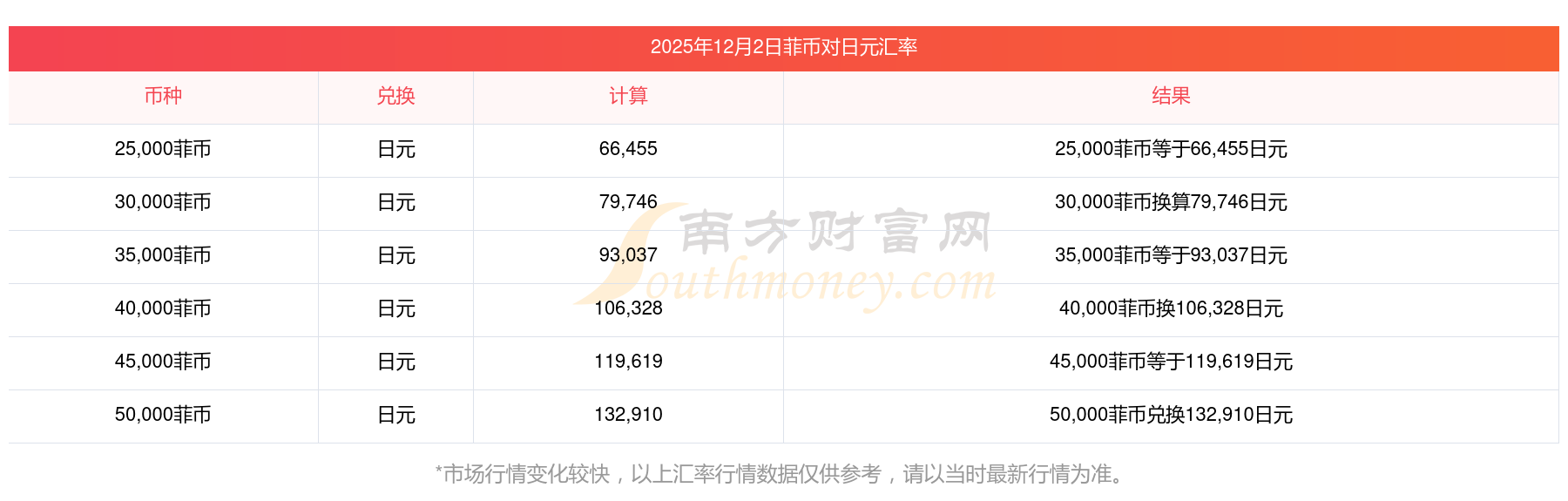菲律賓比索與日元兌換?12月2日1比索能對(duì)多少日元?