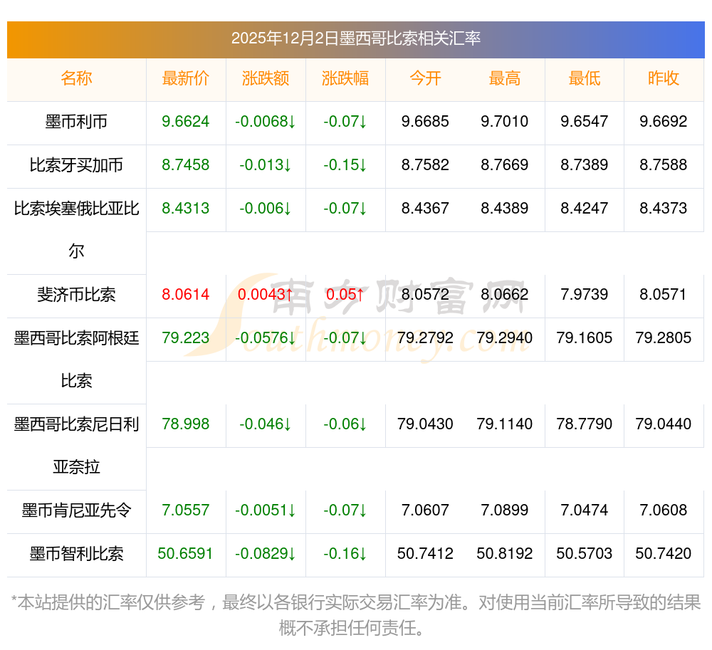 2025年12月2日墨西哥比索相關(guān)匯率查詢