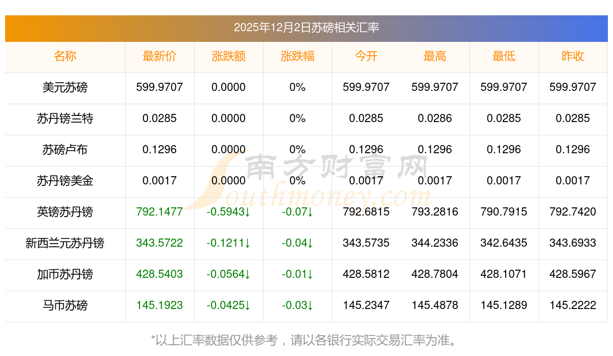 2025年12月2日蘇磅相關(guān)匯率查詢
