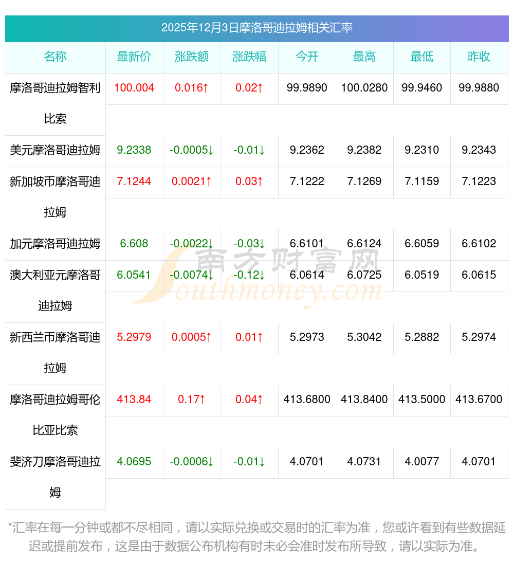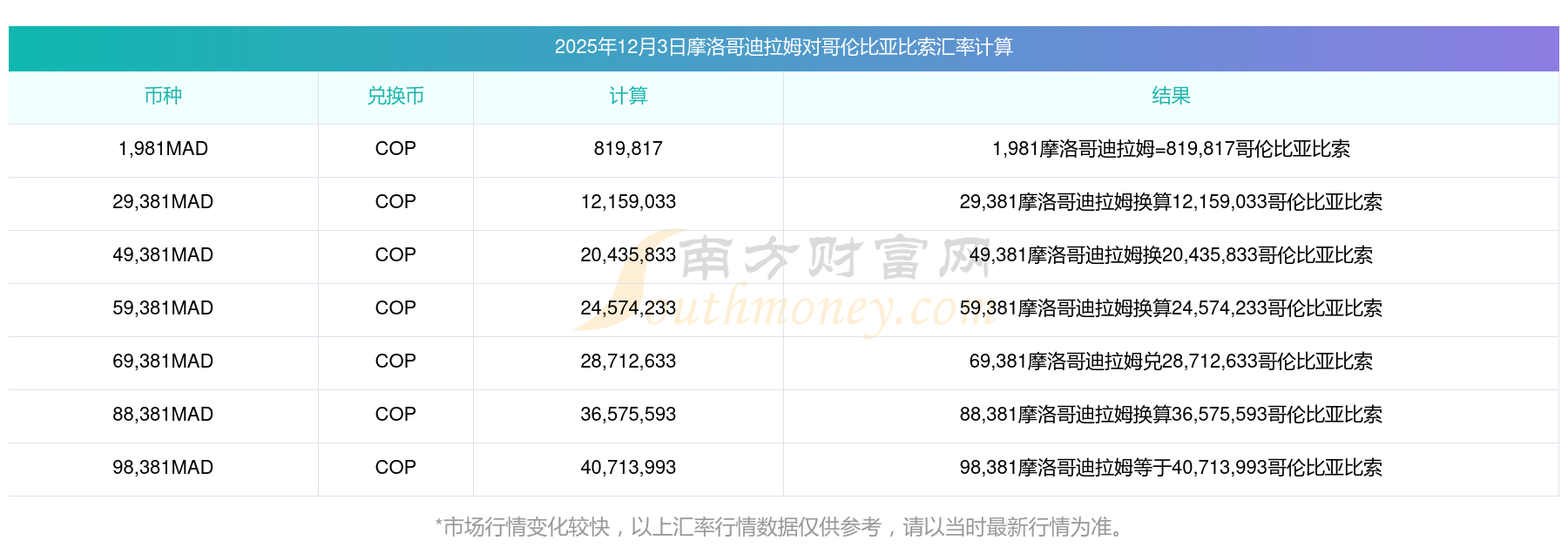 今天摩洛哥迪拉姆兌哥倫比亞比索外幣匯率?2025-12-03