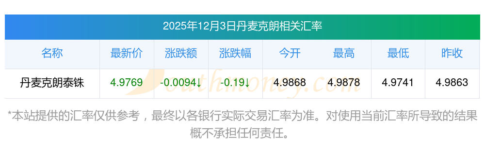 2025年12月3日丹麥克朗相關(guān)匯率查詢