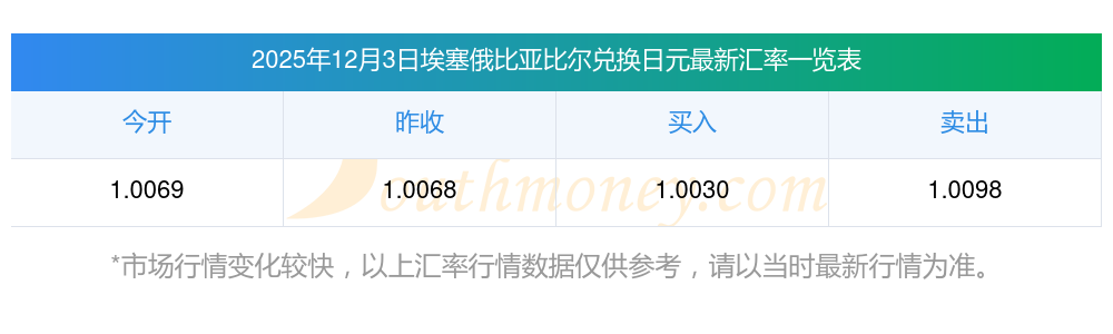 埃塞俄比亞比爾與日元兌換匯率價多少?2025/12/03