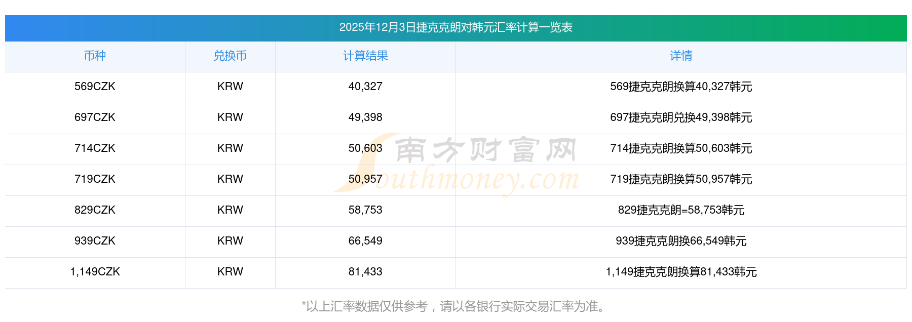今天匯率更新!2025年12月3日49捷克克朗兌換韓元是多少?