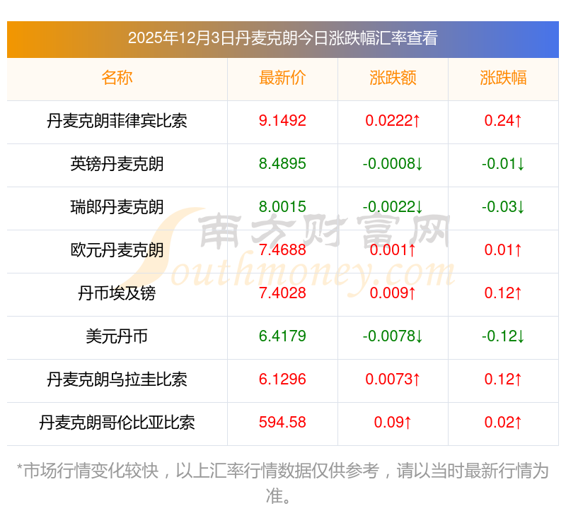 2025年12月3日丹麥克朗相關(guān)匯率查詢