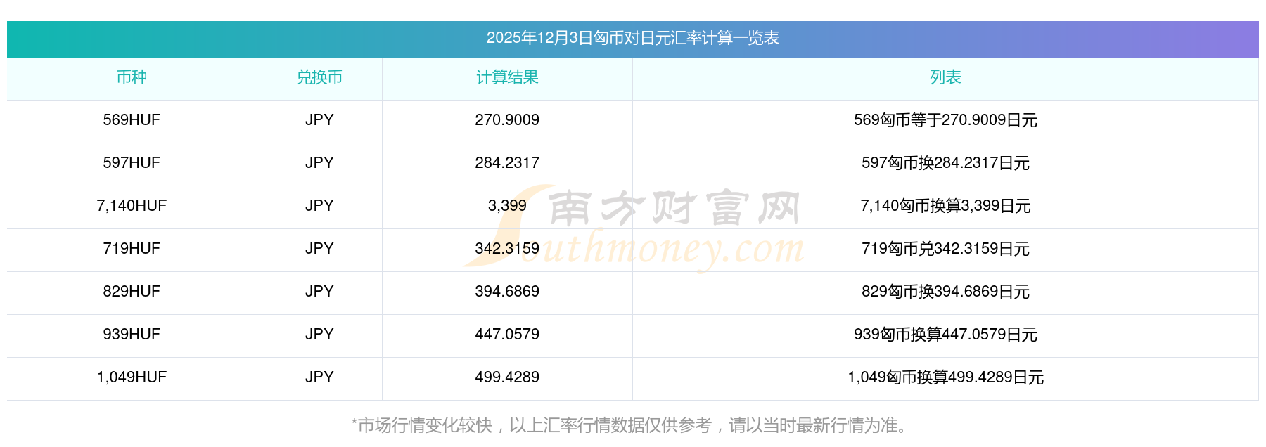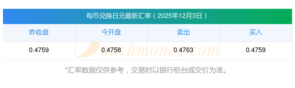 匈牙利福林貨幣匯率,1匈幣等于多少日元?2025/12/03