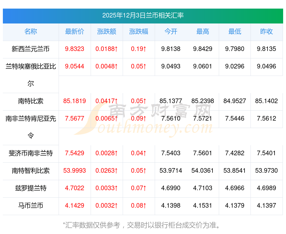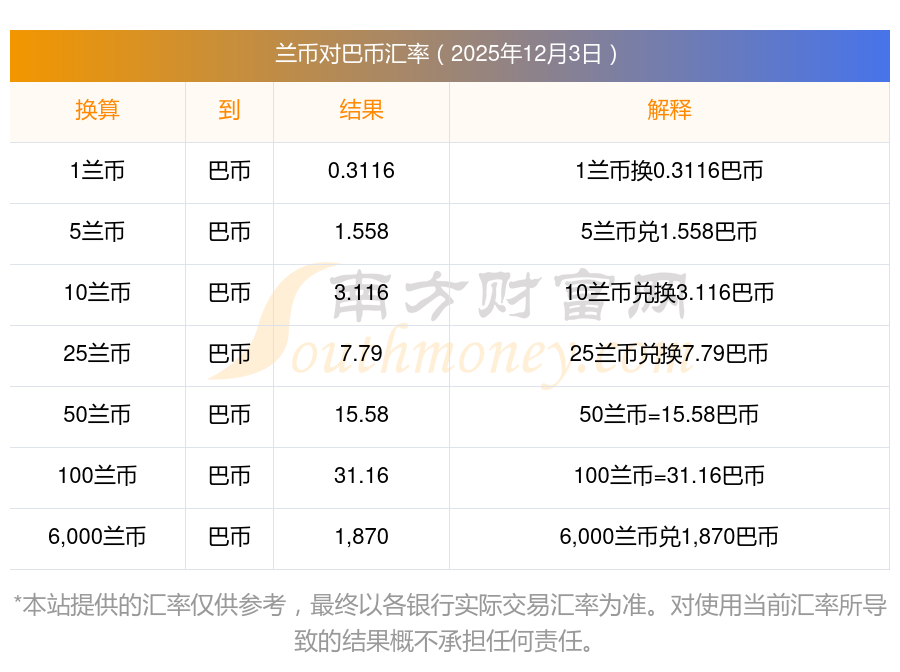 蘭幣14今天折算成巴幣匯率行情2025年12月3日
