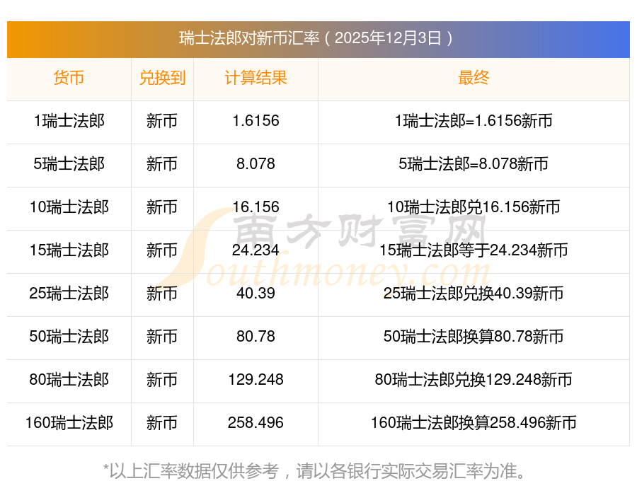 瑞士法郎17折算成新幣匯率今天一覽2025/12/03