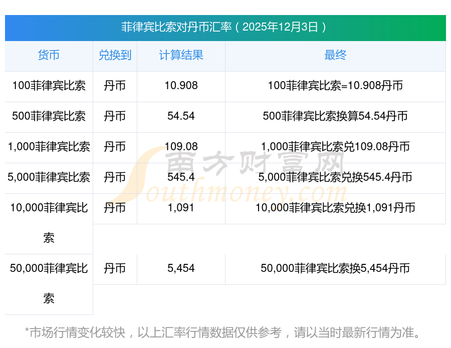 2025年12月3日菲律賓比索與丹幣的兌換匯率計(jì)算如下: