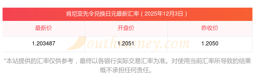 2025年12月3日肯尼亞先令對(duì)日元的匯率為:1.20349