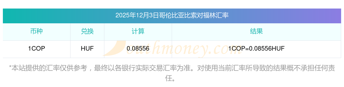 2025年12月3日行情:哥倫比亞比索兌換福林匯率查詢
