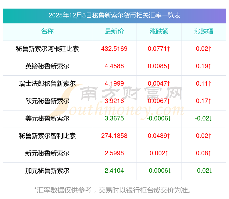 2025年12月3日秘魯新索爾相關(guān)匯率查詢