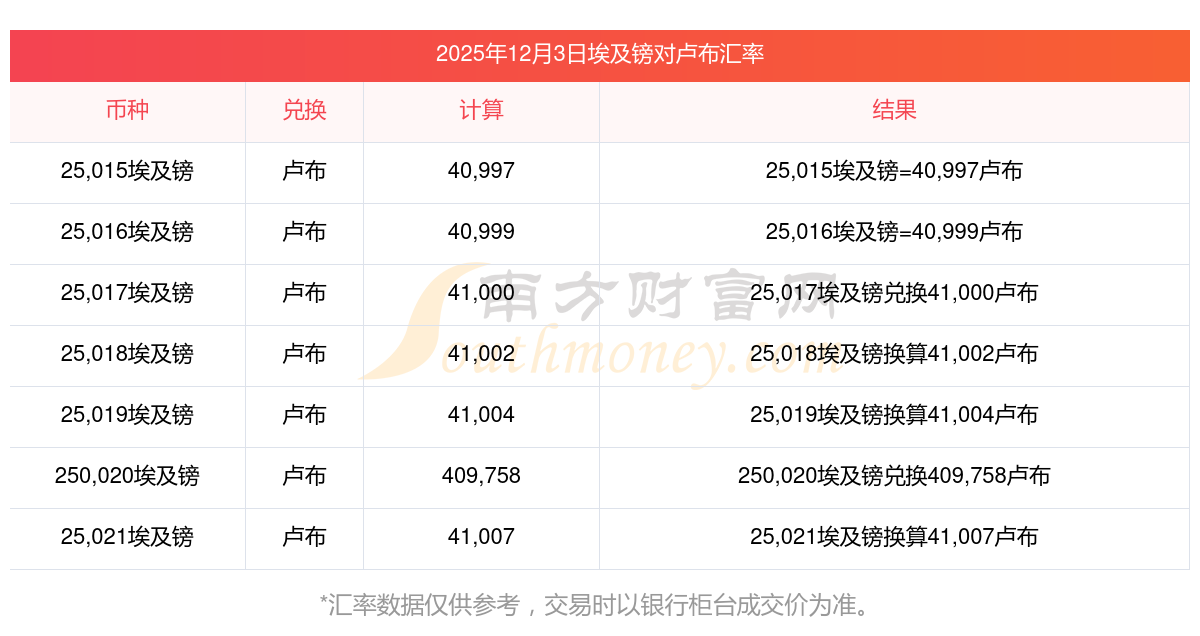 2025年12月3日埃及鎊與盧布的兌換匯率計算如下: