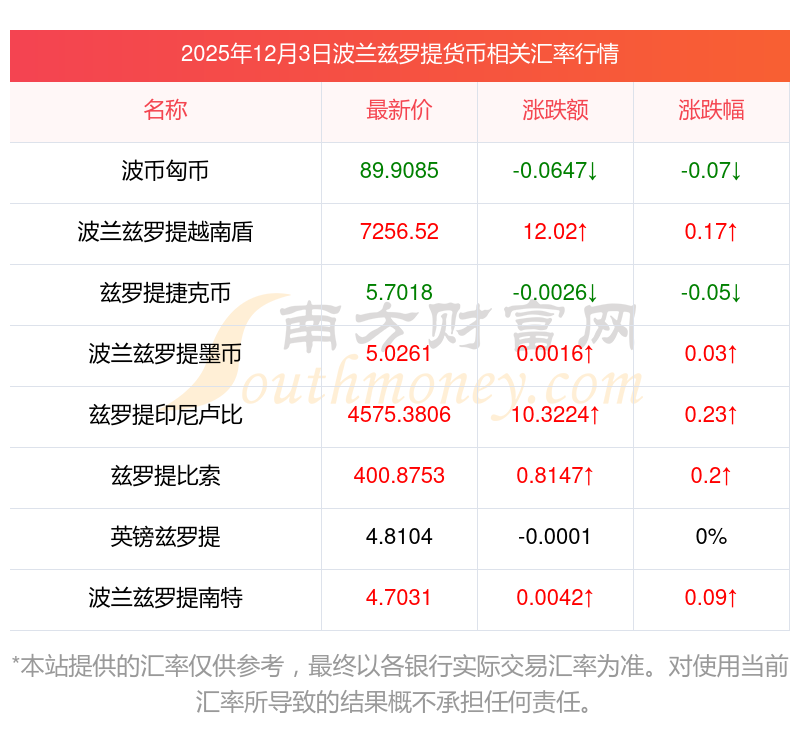 2025年12月3日波蘭茲羅提相關匯率查詢