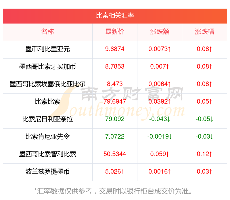 匯率數(shù)據(jù)僅供參考,交易時(shí)以銀行柜臺(tái)成交價(jià)為準(zhǔn)。